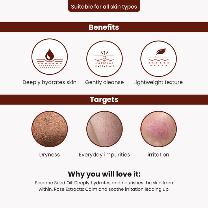 Benefits:Organic Rose Cleansing Milk Helps Gently Removes Impurities. With Its Fine, Light Texture, Make-up Is Softly Removed From The Face And Eyes. Organic Rose Cleansing Milk Is Specially Designed For Dry And Dehydrated Skin.Ingredients:Sesamum Indicum (Sesame) Seed Oil.Simmondsia Chinensis (jojoba) Seed Oil.Roses.Glyceryl Stearate Se.Hamamelis Virginiana (Witch Hazel) Water.Iris Germanica.Flex Seeds Milk.
